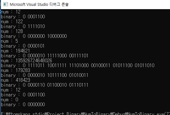 이상으로 tomskang의 C 프로그래밍 - 십진수to이진수 변환 프로그램을 마칩니다.